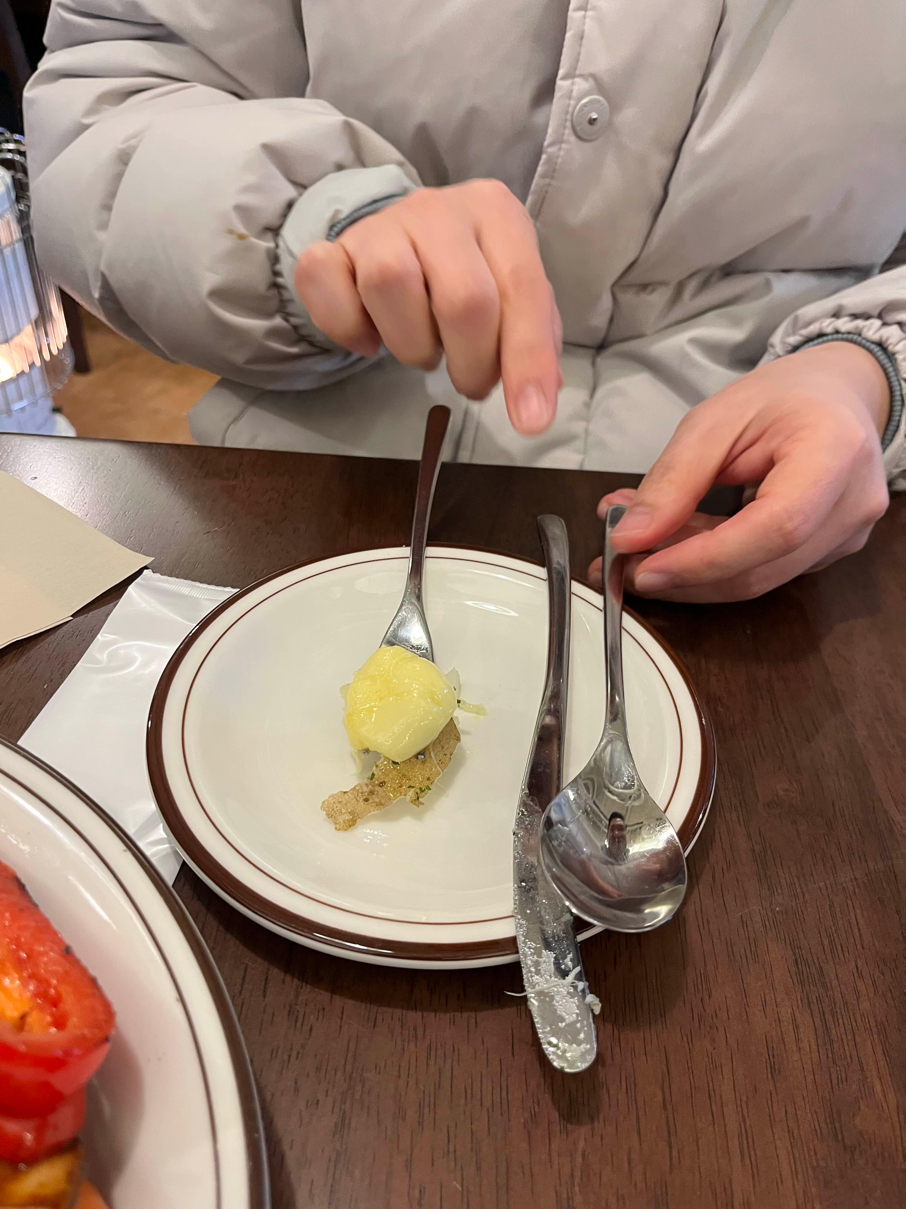 이렇게 감자위에 치즈를 올려서 먹는 것을 첫입으로 먹어보라고 추천해주시더라구요.
