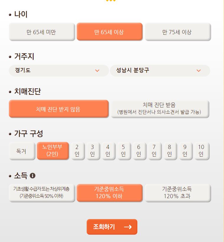 노인부부(2인) 기준 중위소득 120% 이하의 노인이 치매가 걱정이 된다면